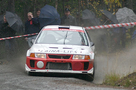 Kiimingin tuttu Putkosen erikoiskoe toimi 20:nen Oulun Urheiluautoilijoiden sprintin kilpa-areenana. Lähes 100 kuljettajaa oli saapunut paikalle mittelemään taitojaan nopealle soratielle. Yleisessä luokassa parhaiten märän kelin niksit hallitsi viime vuoden voittaja Petri Tiikkala. Oululainen ajoi nelivetoisella Mitsubishillä kärkeen jo ensimmäisellä kierroksella ja paransi vielä toisella yrityksellä aikaansa reilulla kahdella sekunnin kymmenyksellä. Näin voitto oli selvä yli kolmen sekunnin erolla seuraaviin. - Tavoitteena oli ajaa jouhevilla ajolinjoilla ilman turhaa reuhaamista, ja se onnistuikin tänään hyvin. Vaikka tie oli märkä, niin se ei silti ollut kovinkaan liukas. Seuraava kilpailu taitaa olla vasta lumikelillä Suopunki-rallissa, tuumaili Tiikkala. Kilpailijoiden turvallisuuden lisäämiseksi järjestäjät olivat rakentaneet heinäpaalihidasteen viime vuonna ulosajoja aiheuttaneeseen mutkaan. Tämä ei ollut aivan voittajan mieleen. - Tottakai on hyvä, että kilpailijoiden turvallisuutta ajatellaan, mutta minusta tuollaiset keinotekoiset hidasteet eivät kuulu metsäerikoiskokeelle. Putkosen luonne muuttui melkoisesti, Tiikkala kommentoi.